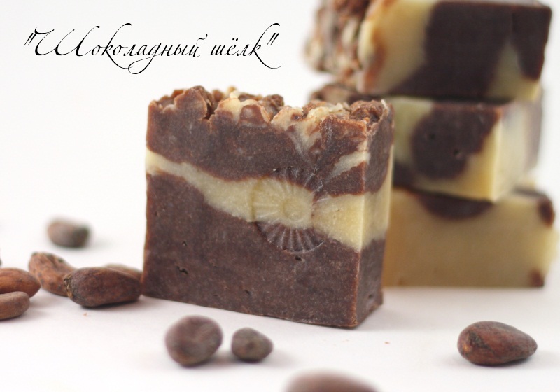Мыло с како-бобами, какао-маслом и натуральным шелком в составе. Без эфиров.
