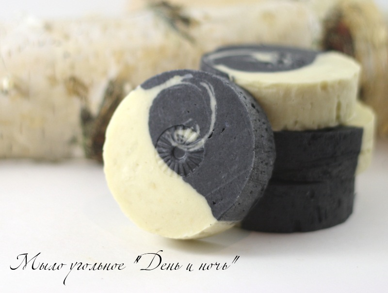Мыло с молотым активированным углем и белой глиной (каолин) в составе.
